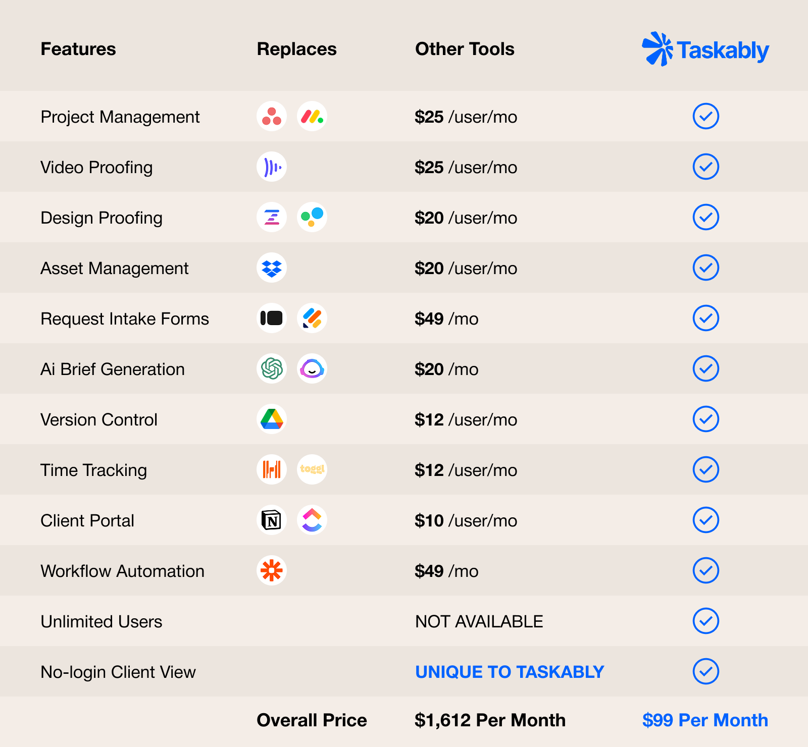 $25/month for a client to view ONE video? $24.99 for a freelancer to check ONE task? You’re being taxed for collaboration.